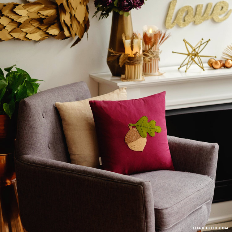 Felt Applique Acorn Pillow tutorial from Lia Griffith