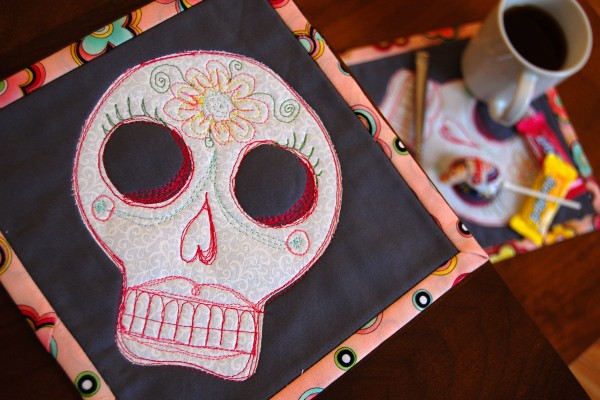 Sugar Skull Mug Rug tutorial from We All Sew